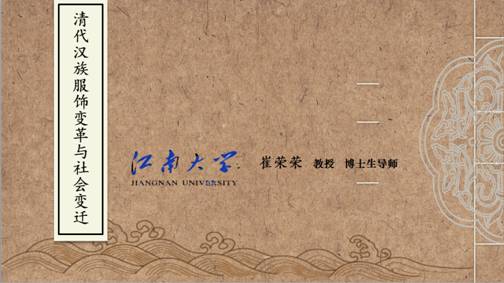 (二)邀请江南大学崔荣荣教授做了《清代汉族服饰变革与社会变迁》学术报告。崔荣荣教授现任江南大学社会科学处副处长/纺织服装学院教授,无锡市政协常委,博士,博士研究生导师,教育部“新世纪优秀人才”,江苏省“333工程”中青年科技领军人才第二层次,江苏省“青蓝工程”优秀青年骨干教师,创建了江南大学民间服饰传习馆,主持“江苏省非物质遗产研究基地(江南大学)”,《服装学报》编辑部主任,主要研究服装设计理论、服装社会文化与民间艺术史。