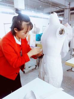 学生进行服装裁剪工艺学习