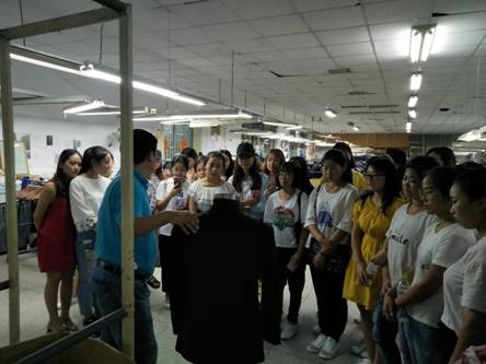 2017年9月13日下午服装工程系组织2015级服装专业学生共37人到青岛市西服厂进行专业认识实习。同学们亲身体验了服装厂的整体工艺流程,生产管理等方面工作,能将所学的专业知识与实践相结合,并在实践中得到印证,收获颇丰。